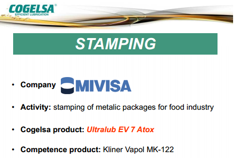 西班牙可赛Cogelsa,食品级冲剪油EV7,在MIVISA项目上推荐使用。